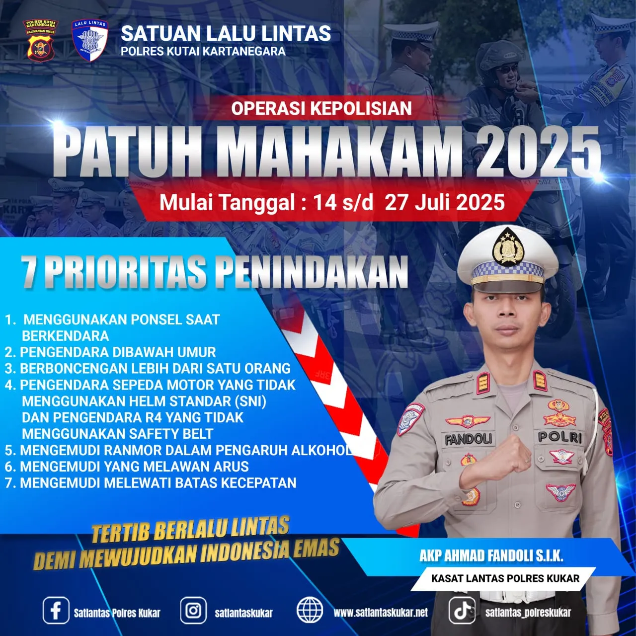 Kepala Satuan Lalu Lintas (Kasat Lantas) Polres Kukar, AKP Ahmad Fandoli, mengungkapkan bahwa pelaksanaan operasi diawali dengan apel gelar pasukan pada hari pertama, sebagai bentuk kesiapan personel dalam menjalankan tugas di lapangan. Ia menegaskan bahwa Operasi Patuh Mahakam bukan sekadar rutinitas tahunan, melainkan langkah konkret untuk membangun budaya berlalu lintas yang lebih tertib dan aman bagi seluruh masyarakat.